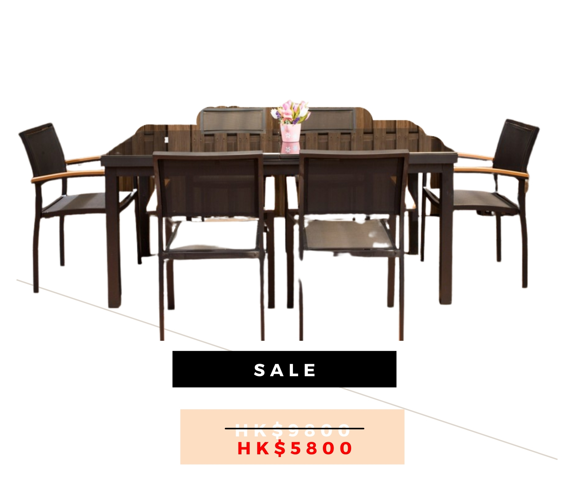 優質伸縮玻璃檯 (240 x180 x100 cm) 黑色鋁框連網布, 杏色塑木把手 ( 一 檯連 六 張椅) quantity